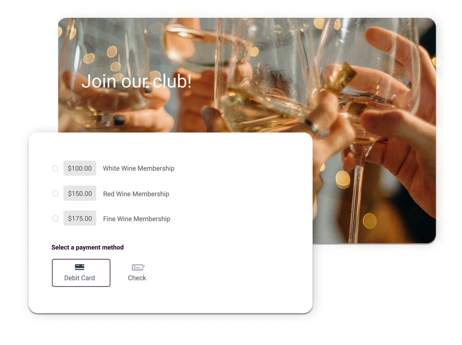 Open an online store and use your logo and house colors as a great source of communication, and a potential source of revenue. Use an online store to sell different cases of wine, club merchandise, or event add-ons. Easily manage stock and set delivery fees with multiple forms of payment.